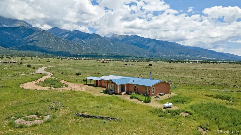 Step into a 2,176 SF sunny home in Baca Grande Grants, with stunning mountain views thoughout, on 2+ acres backing a greenbelt, steps from Willow Creek and 8 minutes to Crestone. The bright entry room leads to a large open-concept living, dining, and kitchen area. New south-facing Anderson windows bring passive solar warmth and light, and a new efficient wood-burning stove gives cozy charm. The spacious kitchen features a center island, lots of storage and counterspace, new gas stove, dishwasher & Kohler fixtures, and an eat-in bar. A dining area glass door opens to a fenced yard with garden beds, and plenty of room for pets or play. The flexible layout suits families, roommates, multigenerational living or income potential. The central living area separates two wings, giving each privacy. One has two bedrooms with new flooring, a full bath with storage, laundry room, hall closet and utility space. The primary suite on the other side offers a private entrance, entry room, two larger rooms, a massive walk-in closet with new carpet, and a ¾ bath. It can also serve as: · third bedroom + Airbnb suite · third bedroom + office/treatment space (with own entrance) · two-bedroom Airbnb suite With changes, it could create four bedrooms (add one interior door), a third bedroom + studio apartment, or a one bedroom apartment. Outside, enjoy a carport, a sizable attached storage/work shed (both with outlets), oversized parking, and an owned propane tank for cost savings. The home features a deep well, cement crawlspace, metal roof, fresh paint, new light fixtures, septic riser, and water filter. It’s rare to find this much space, light, and versatility in Crestone, especially at this price. At $182/SF, you’d be hard pressed to find a better value. Come see the views and imagine the possibilities!